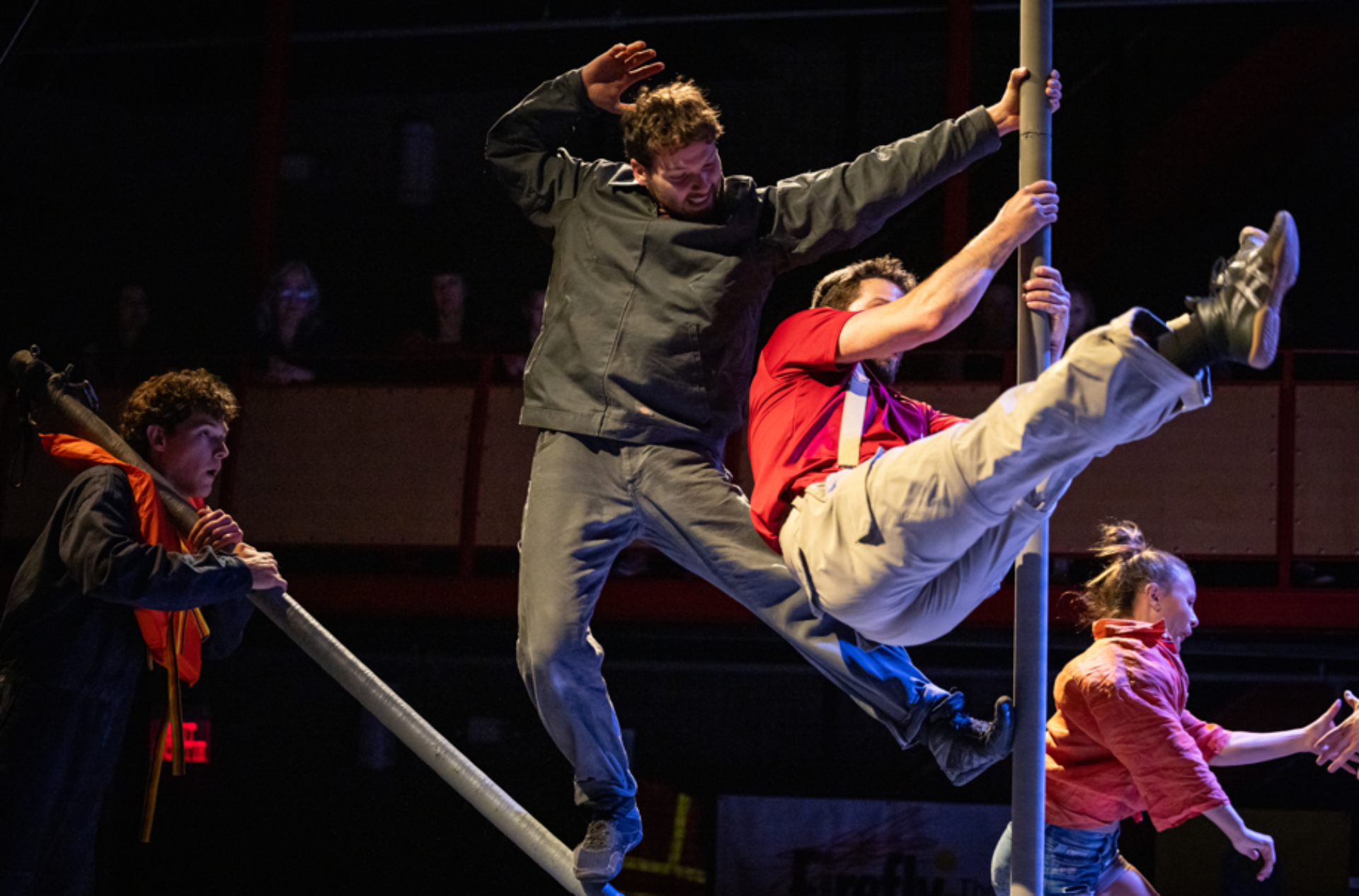 Founded in 2021 by three creators from the circus and performing arts—Alexia Gourd, Fernand Rainville, and Hugo Noël—the company brings together complementary expertise in directing, multidisciplinary performance, and acrobatic design. Together, they are developing a new type of stage experience, fueled by their travels, their love of adrenaline, and their shared passion for the stage.