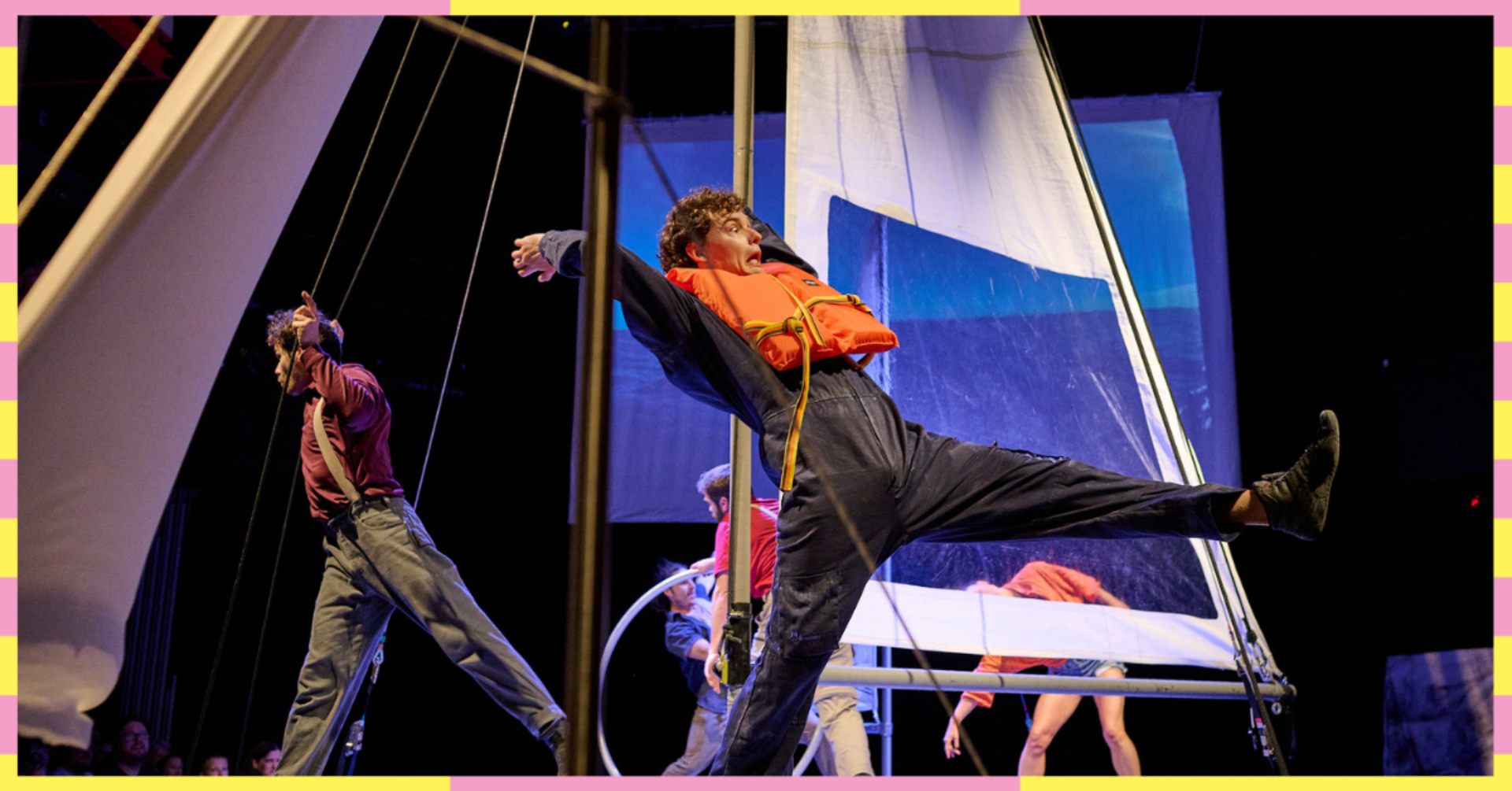 FLŌ: Cirque Immersif is an experience that plunges the audience into the heart of a maritime adventure inspired by real events. Aboard a large acrobatic sailing ship, circus acts, video projections, music, and a captivating narrative come together to recreate the intensity of an ocean crossing. Thanks to a unique immersive setup, spectators are literally catapulted into the center of a storm at sea, feeling the gusts of wind projected into the auditorium. Blending poetry and realism, this human odyssey explores courage, solidarity, and transformation.